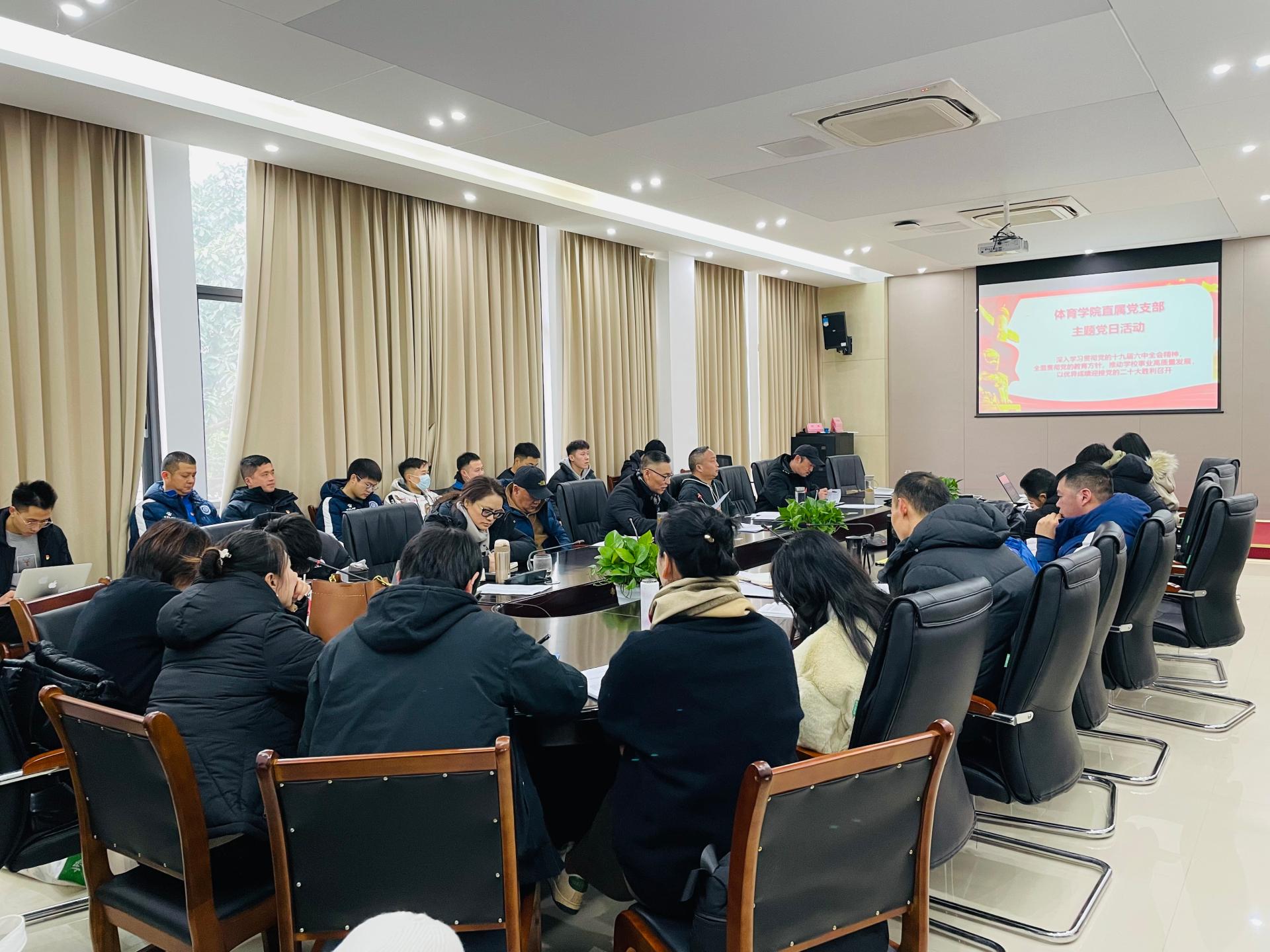 12月28日,开云官方版在线入口直属党支部在游泳池201会议室开展本月主题党日活动,深入学习贯彻党的十九届六中全会精神,全体师生党员参加,直属党支部书记杨远波主持会议。