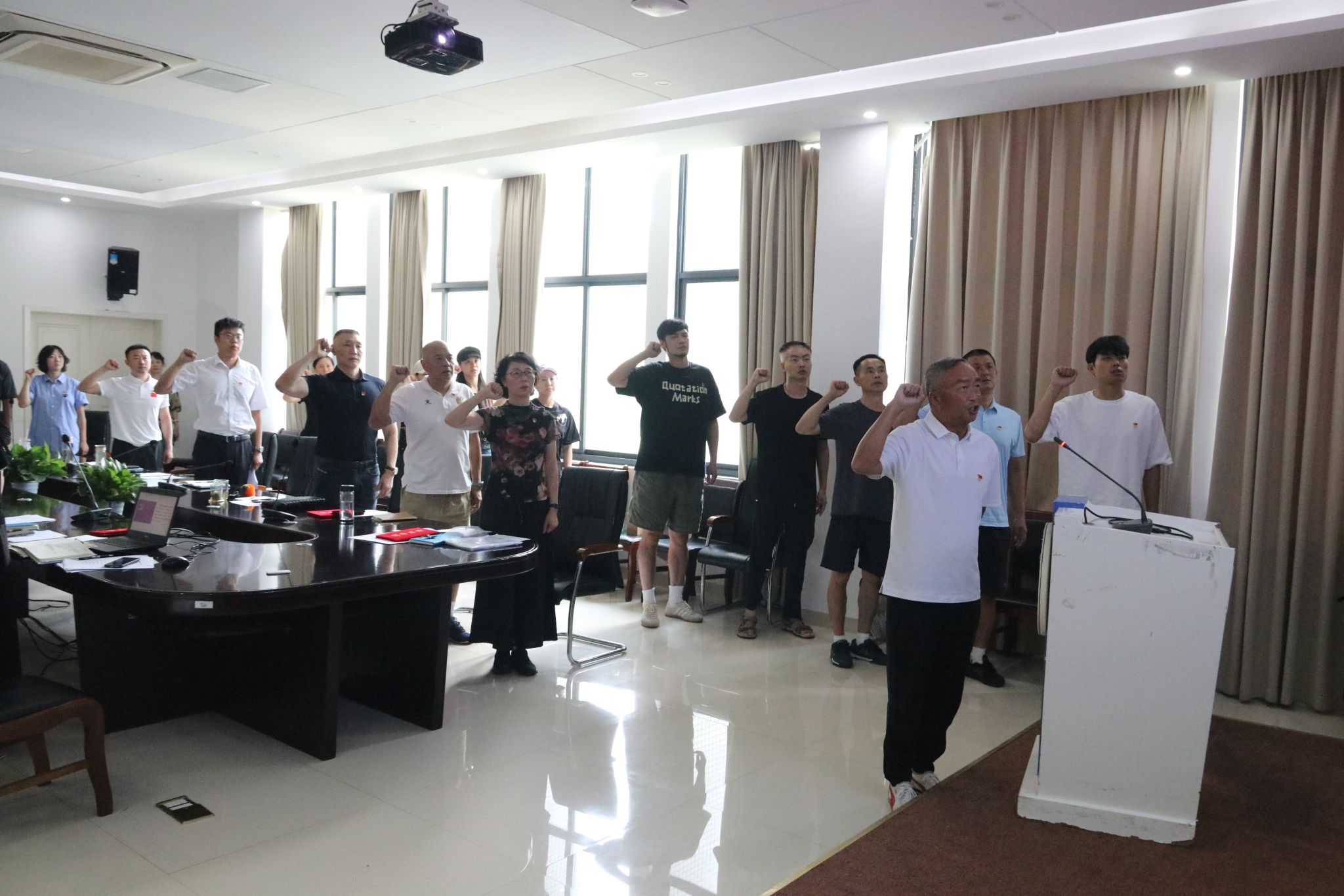 周正宏带领全体党员重温入党誓词,同过“政治生日”,用铮铮誓言表达对党的忠诚和为党的事业奋斗终身的决心。