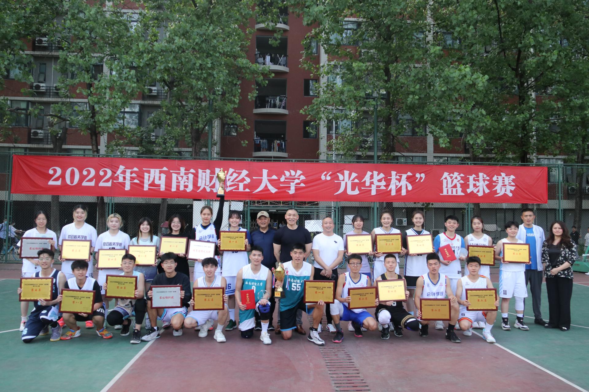 4月18日,2022年西南财经大学“光华杯”篮球赛在柳林校区拉开帷幕。本次比赛设置了男女“五人制篮球”和“趣味篮球”两项比赛,共有来自16个学院的学生、教工及校友,共32支队伍参加,参赛人数达到400余人。
