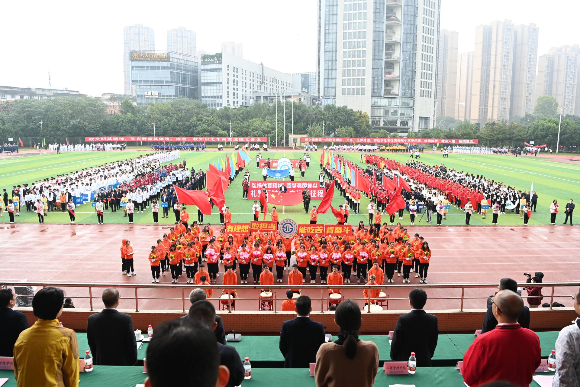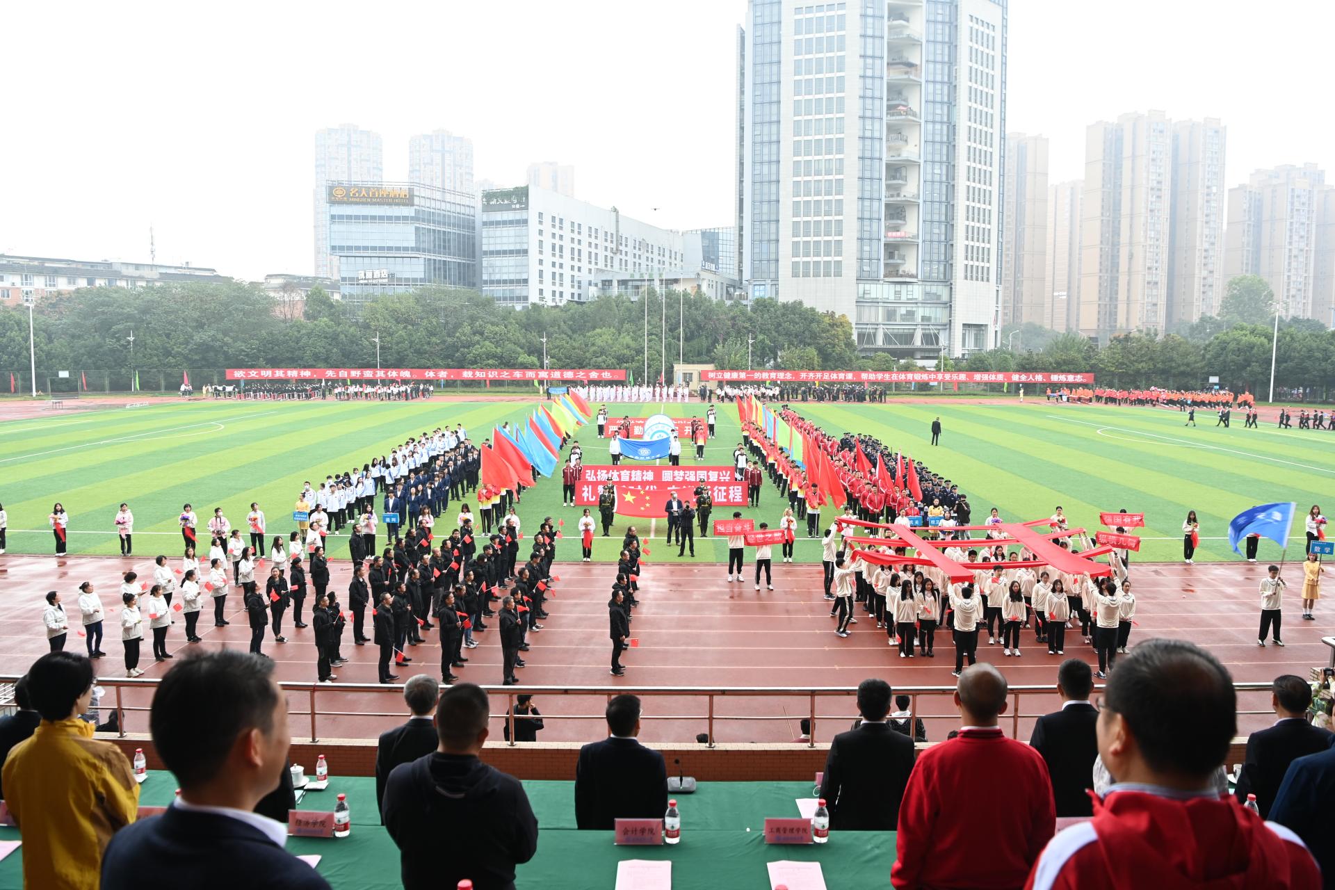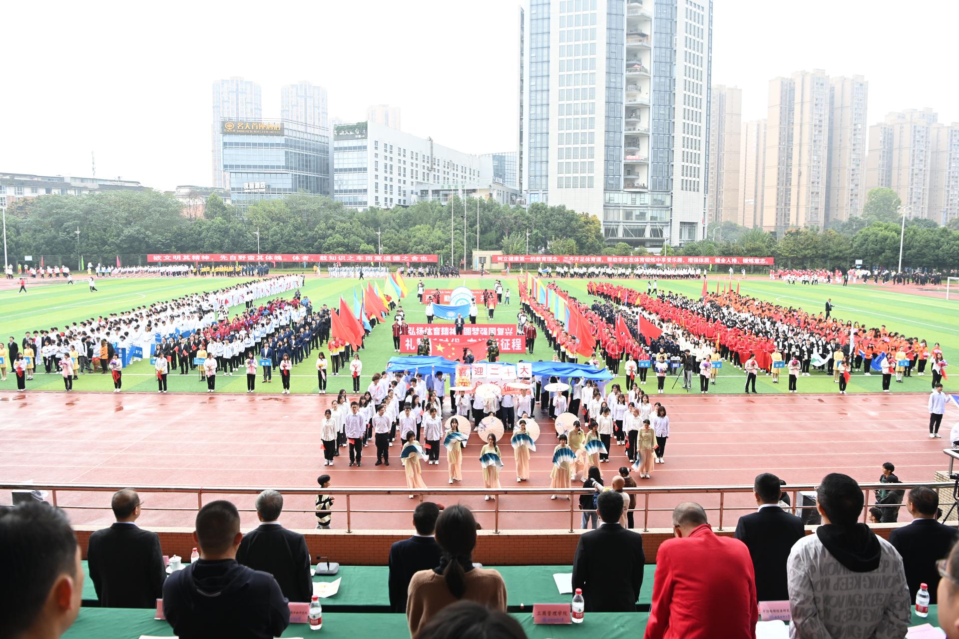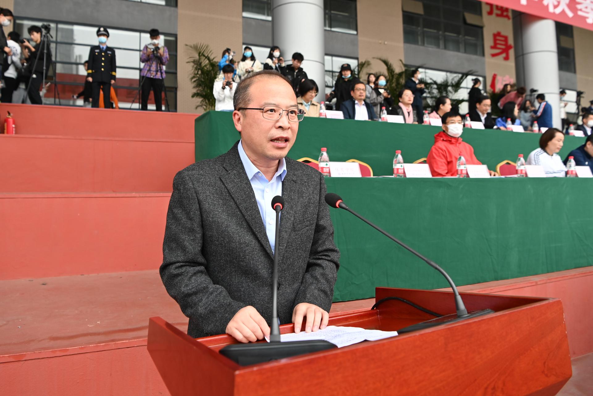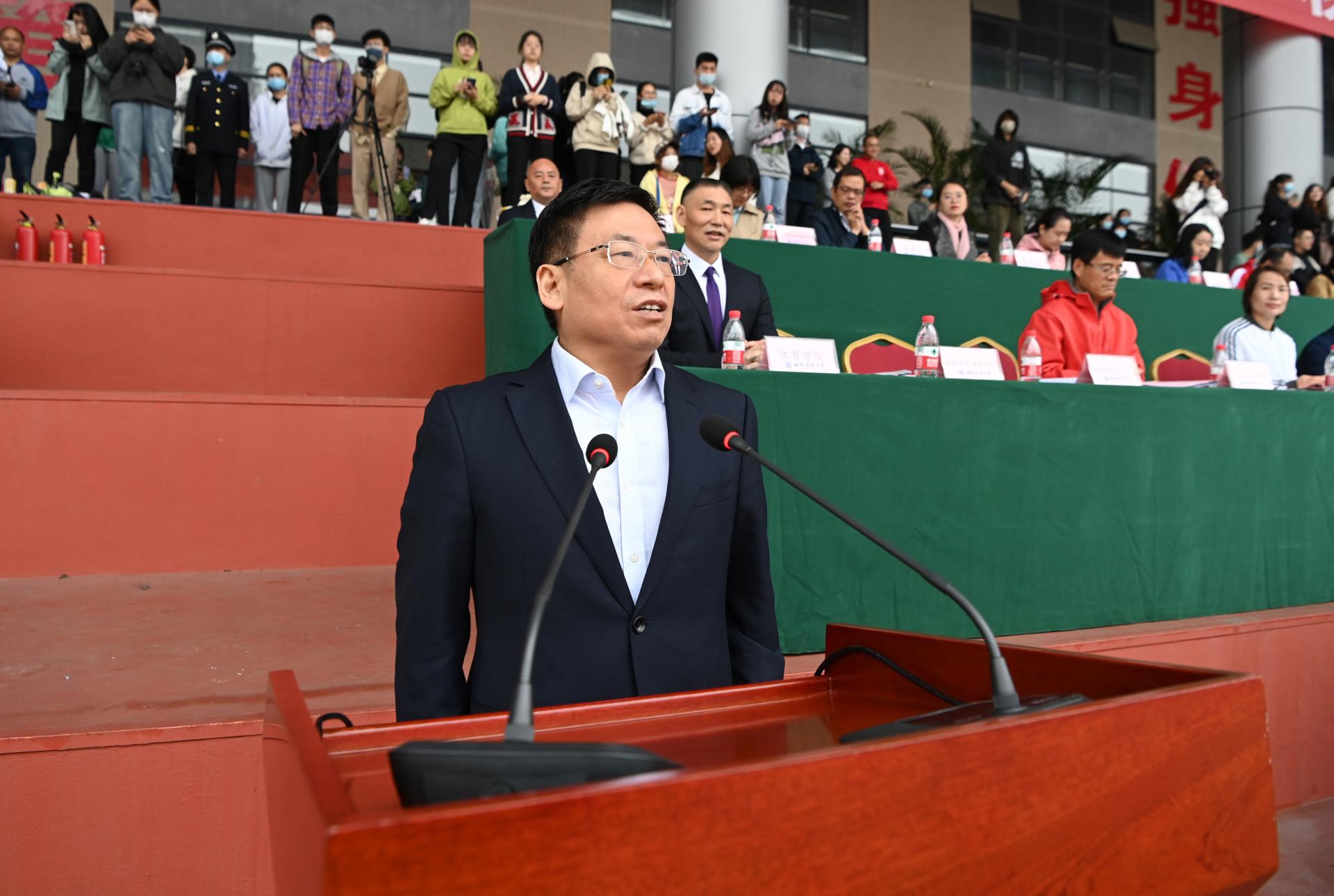 在全国上下深入学习宣传贯彻党的二十大精神之际,开云(中国)2022年秋季运动会积极响应习近平总书记在党的二十大报告中发出的“加快建设体育强国”总号召,以“礼赞新时代、奋进新征程,弘扬体育精神、圆梦强国复兴”为主题,于10月27-28日在柳林校区举行。学校党委书记赵德武,党委副书记、校长卓志,党委副书记马骁,党委副书记、副校长李永强,党委常委、副校长尹庆双、史代敏、张邦富、李志生,学院(研究院)和各职能部门负责人参加了开幕式。