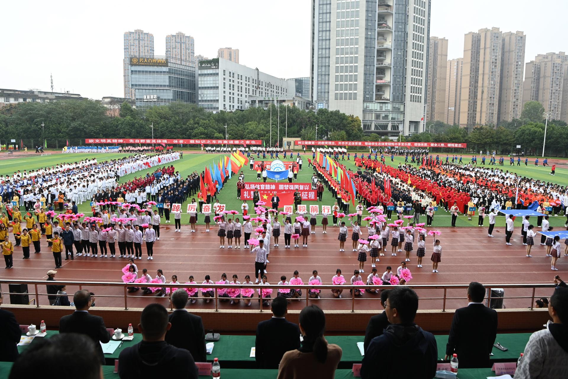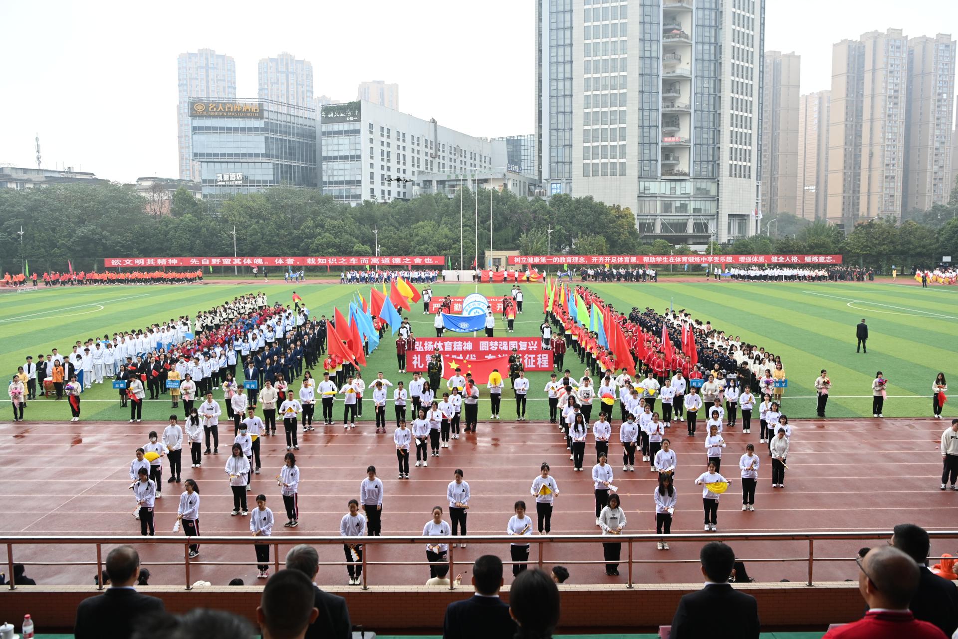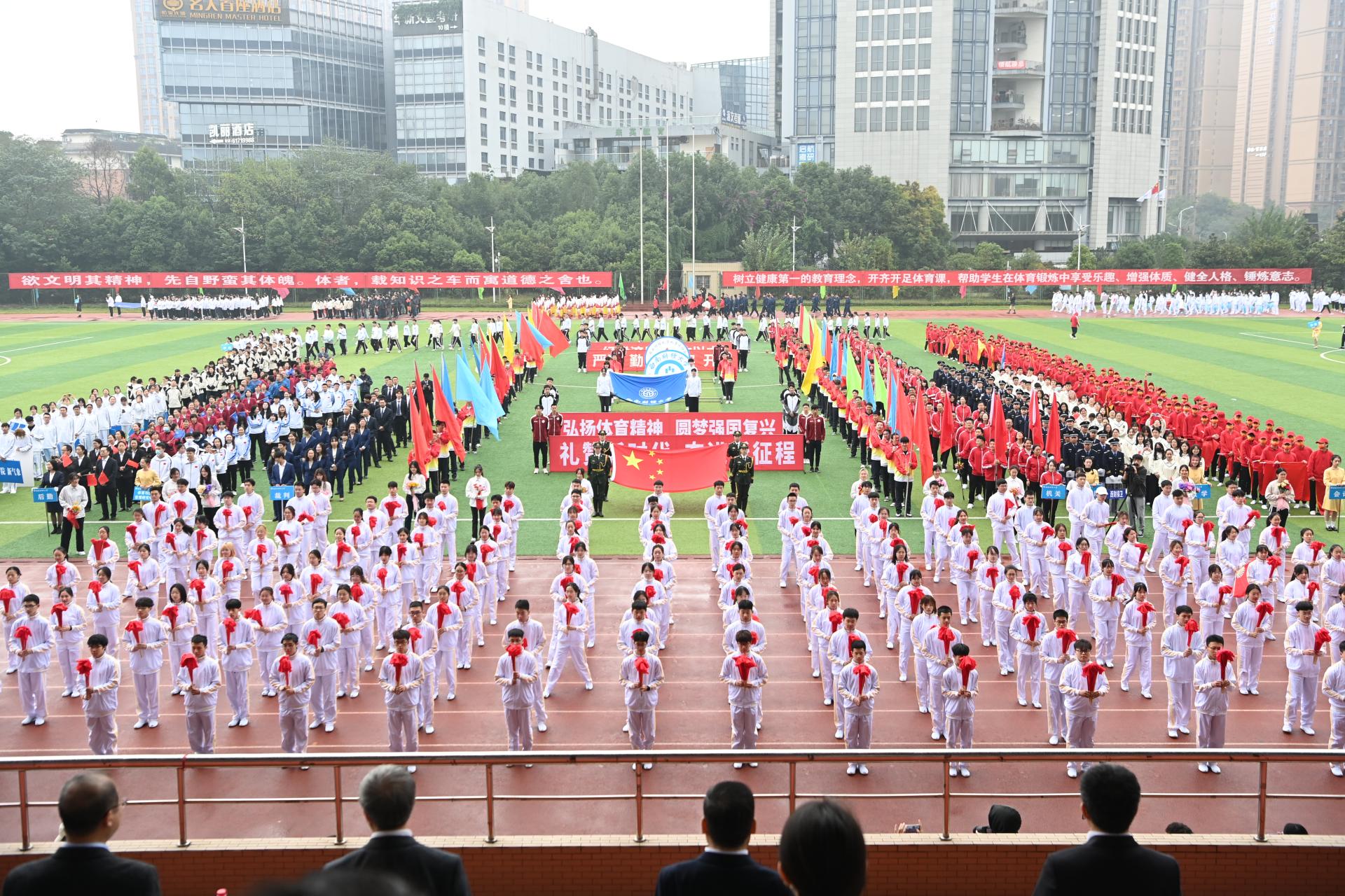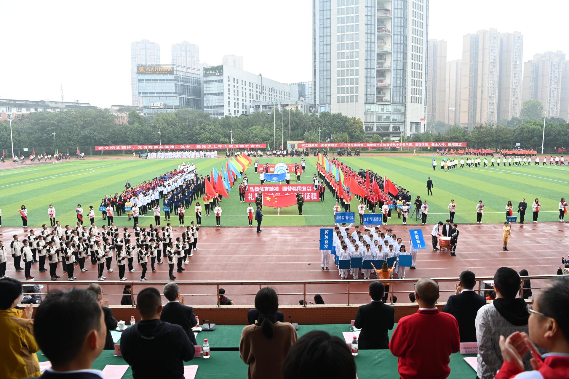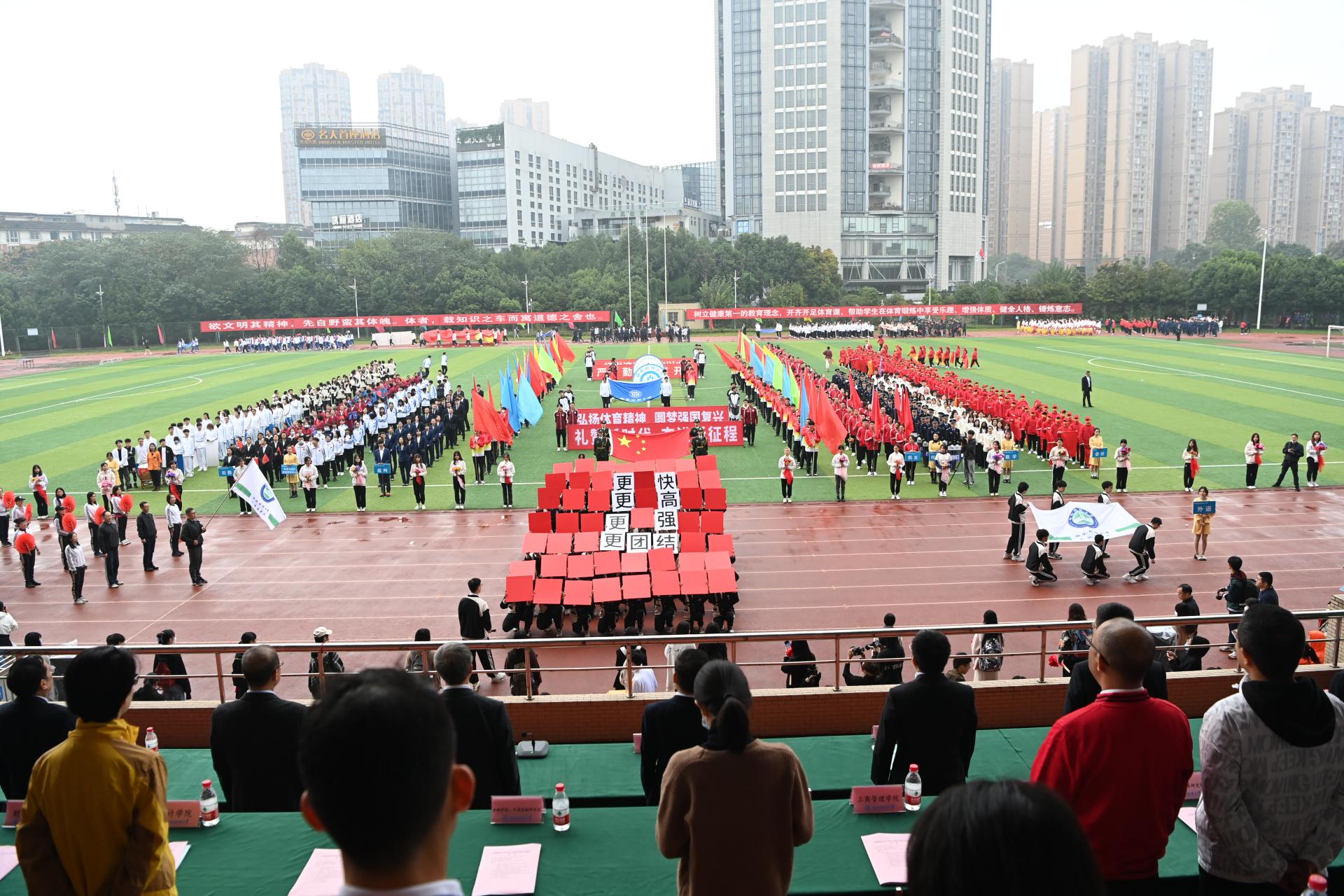 在全国上下深入学习宣传贯彻党的二十大精神之际,开云(中国)2022年秋季运动会积极响应习近平总书记在党的二十大报告中发出的“加快建设体育强国”总号召,以“礼赞新时代、奋进新征程,弘扬体育精神、圆梦强国复兴”为主题,于10月27-28日在柳林校区举行。学校党委书记赵德武,党委副书记、校长卓志,党委副书记马骁,党委副书记、副校长李永强,党委常委、副校长尹庆双、史代敏、张邦富、李志生,学院(研究院)和各职能部门负责人参加了开幕式。