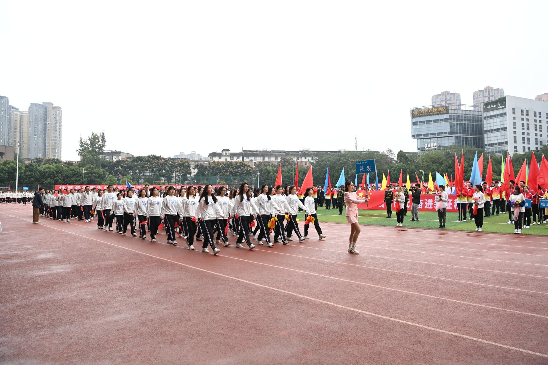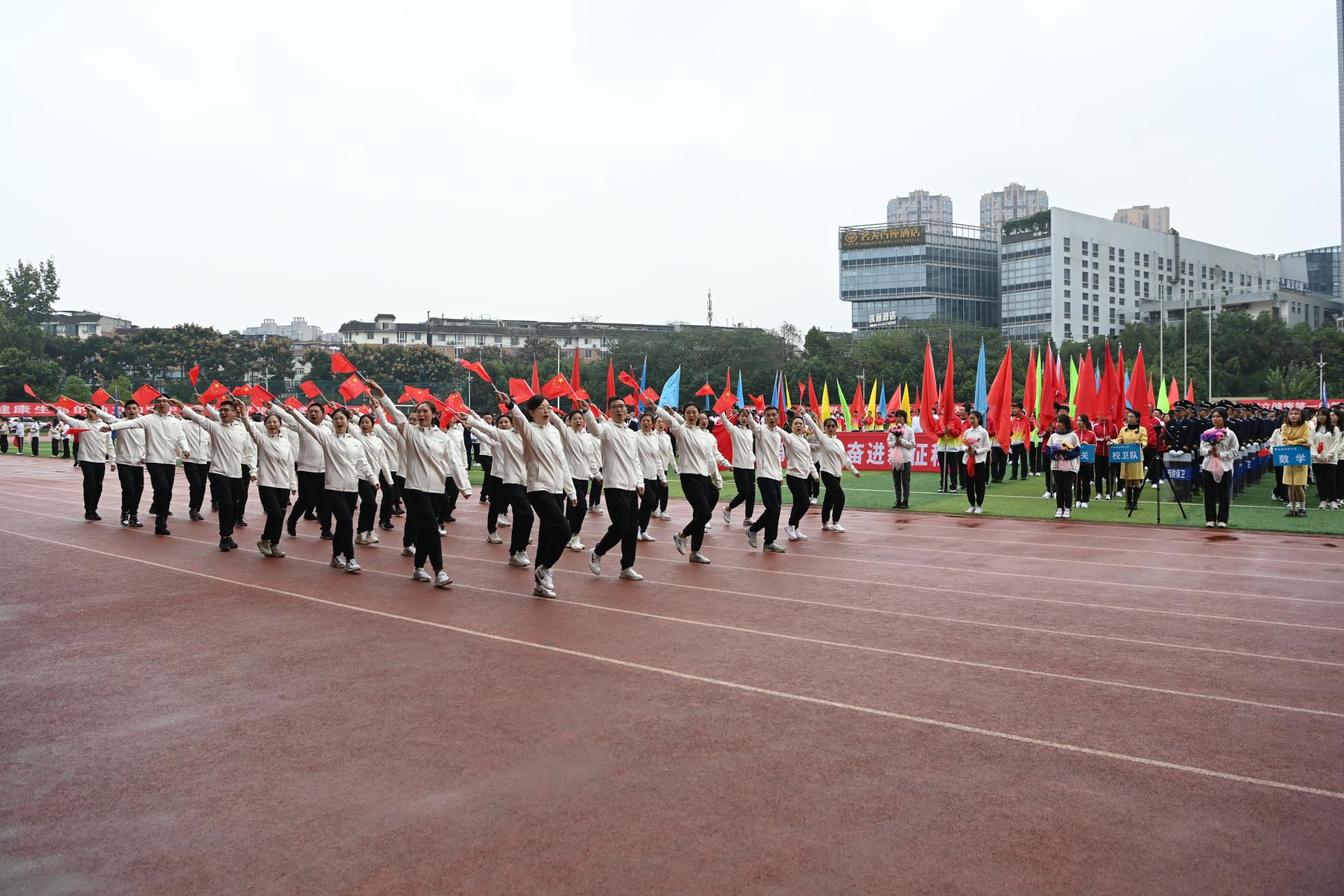 10月27日8时30分,运动会在晨曦运动场正式举行。赵德武宣布运动会开幕,卓志致开幕辞。卓志指出,体育是全面落实立德树人的基础性工程,开云(中国)多年来一直把体育教育作为培养新时代财经领域卓越人才的重要方式,在不断完善教学模式、制度保障、体育文化、健康管理“四位一体”学生体质健康促进体系的过程中,形成了“一校多品、一院一品、一社一品”的体育教育新格局,实现了师生“育体”和学校“育人”的有机结合。李永强主持开幕式。