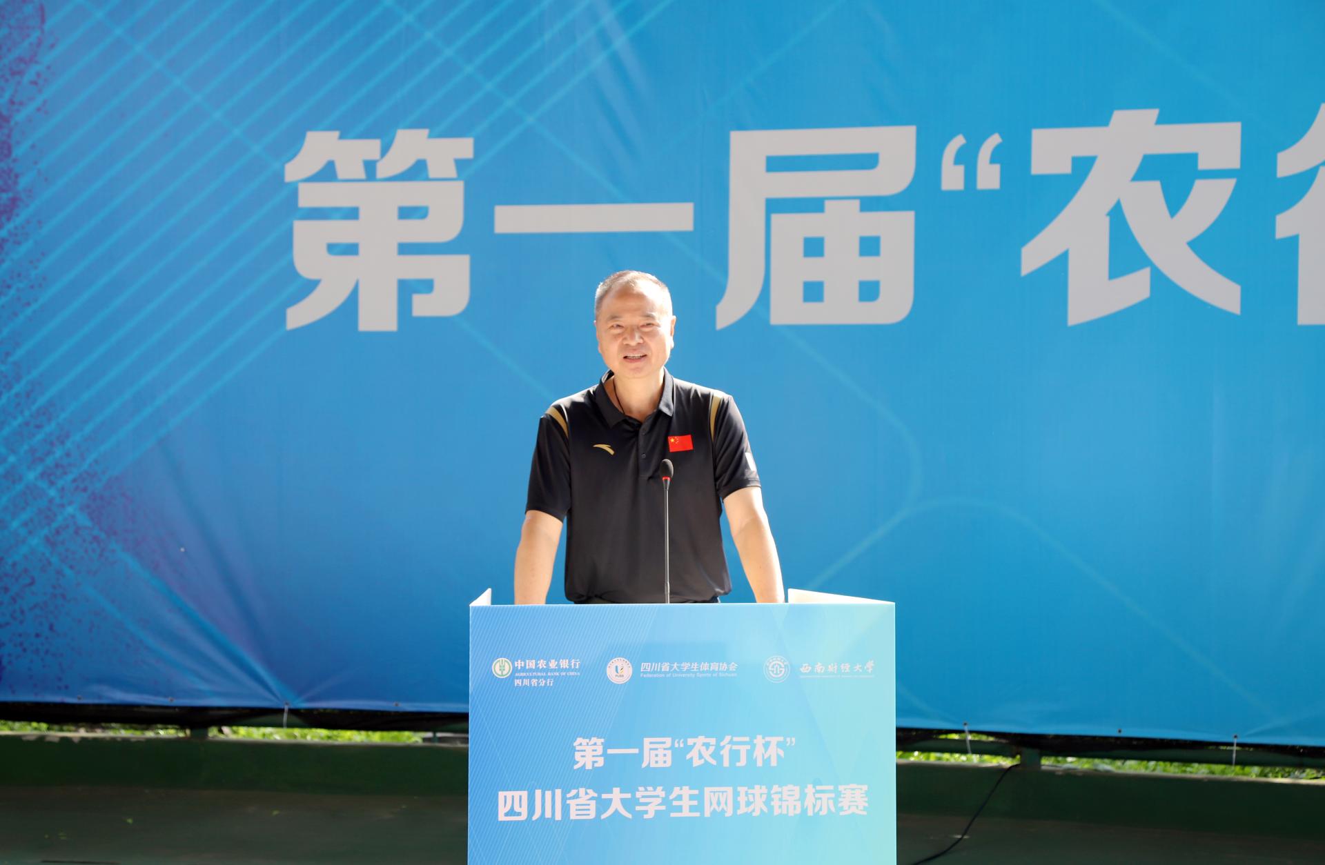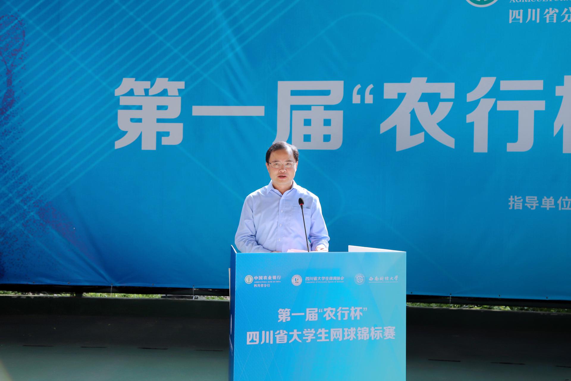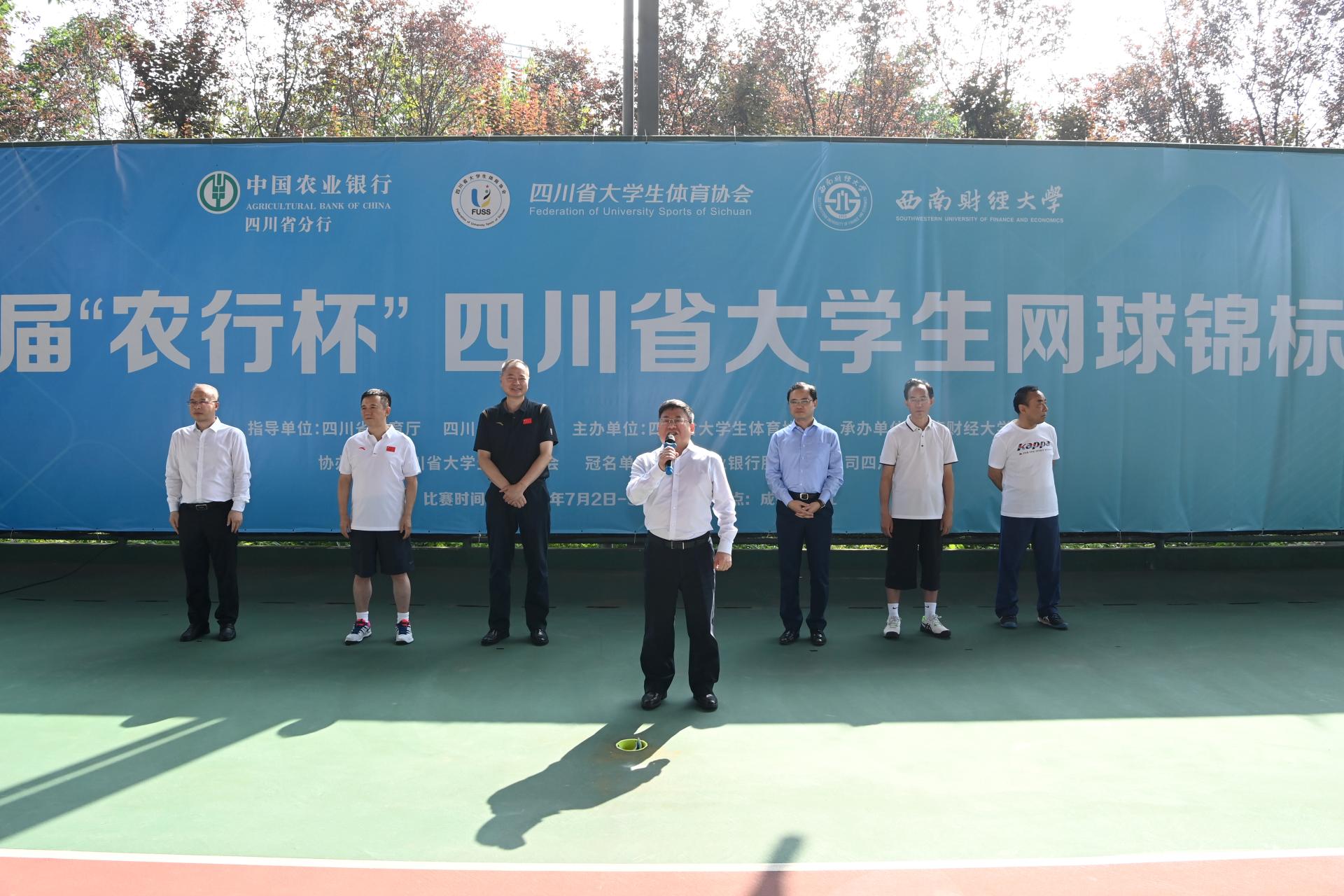 7月2日、3日,由四川省教育厅、四川省体育局指导,四川省大学生体育协会主办,西南财经大学承办,中国农业银行四川省分行冠名的第一届“农行杯”四川省大学生网球锦标赛在开云(中国)柳林校区举行。来自全省的47支代表队和700余名运动员、教练员、裁判员以及广大志愿者参与其中。四川省大学生体育协会总顾问、成都开云官方版在线入口原党委书记刘青,四川省高等院校网球协会主席、成都信息工程大学原党委书记赖廷谦,中国农业银行四川省分行党委书记、行长刘加旺,中国大学生体育协会网球分会副主席、四川大学副校长张林教授,成都市网球协会副主席、中国农业银行成都分行调研员贺杰,开云(中国)党委书记赵德武,党委常委、副校长李永强出席开幕式。我院院长杨远波主持开幕式。