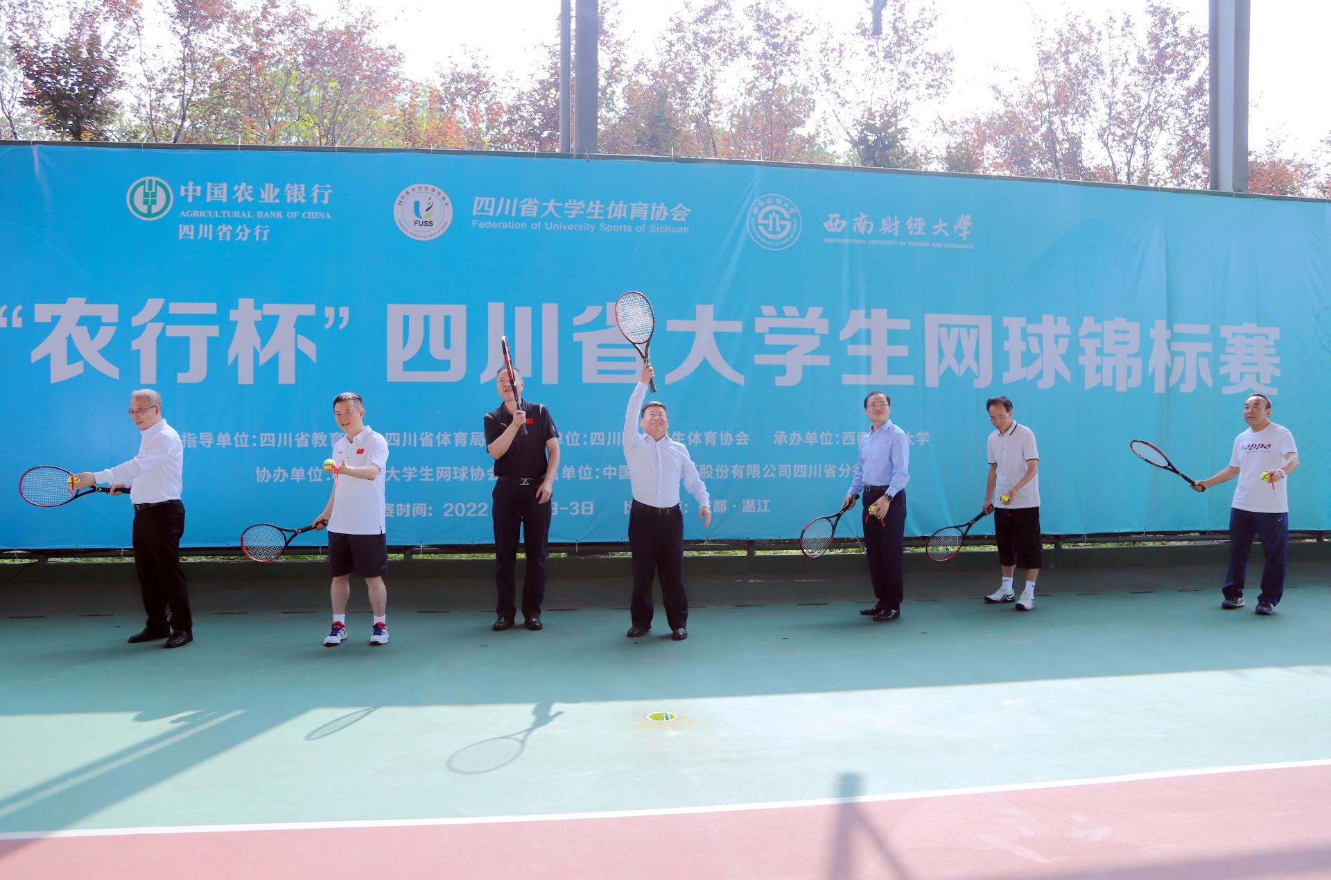 刘青代表四川省大学生体育协会向农行四川省分行的大力支持和开云(中国)承办本次赛事表示衷心感谢,并预祝本次比赛圆满成功。刘加旺代表农行四川省分行对本次比赛开幕表示热烈祝贺,并表示以“网”为媒,共建文体活动平台,共襄师生网球盛会,共享竞技体育魅力,促进高校间交流互信、务实合作、多方共赢。 随后主席台的领导嘉宾为本次比赛开球。