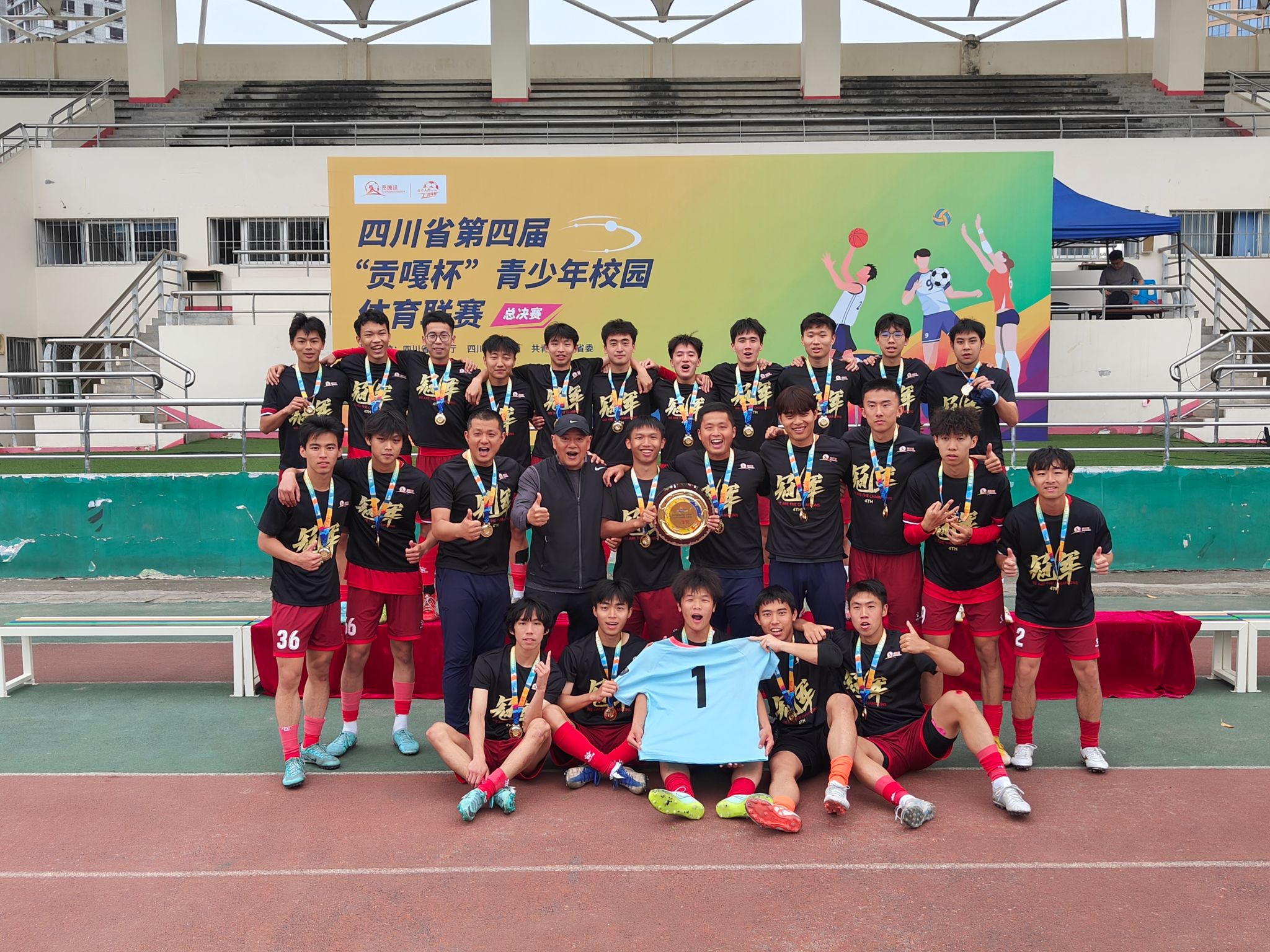 “贡嘎杯”青少年校园体育联赛是目前四川省最高水平青少年体育竞赛。本届联赛足球项目的竞赛从2023年11月持续到2024年6月。高校男子专业组比赛分为预赛和决赛两个阶段,来自全省45个高校、近1000名运动员参赛,开云(中国)高水平男子足球队经过10余场比赛的顽强拼搏,成功登顶“贡嘎之巅”,首夺“贡嘎杯”高校男子专业组冠军。