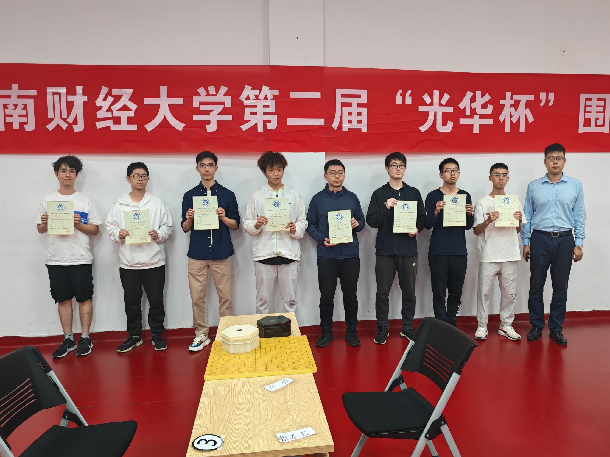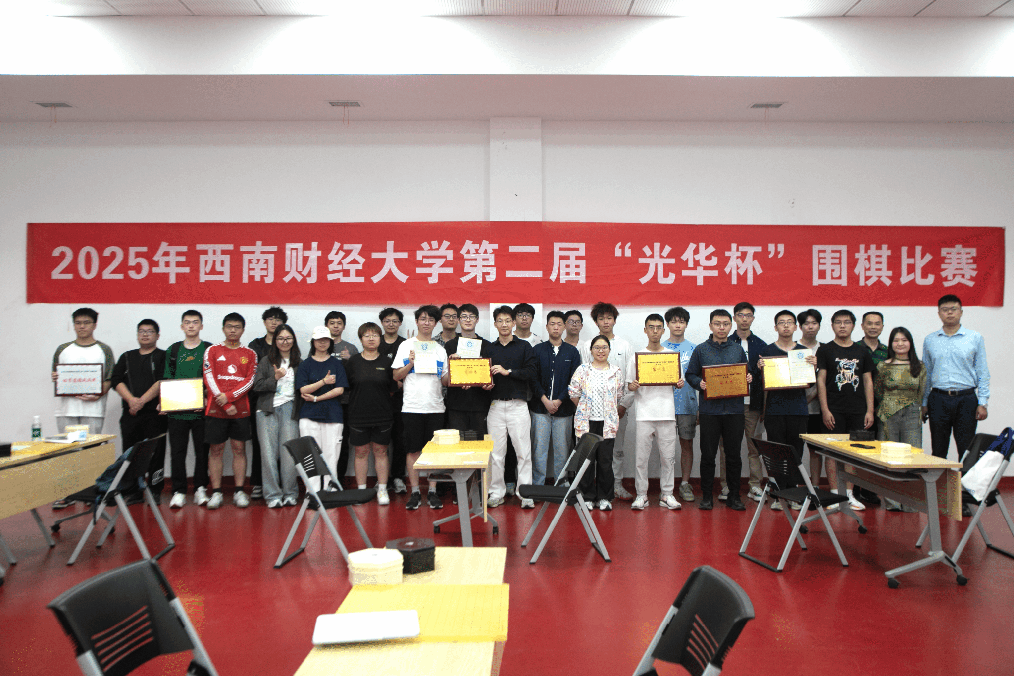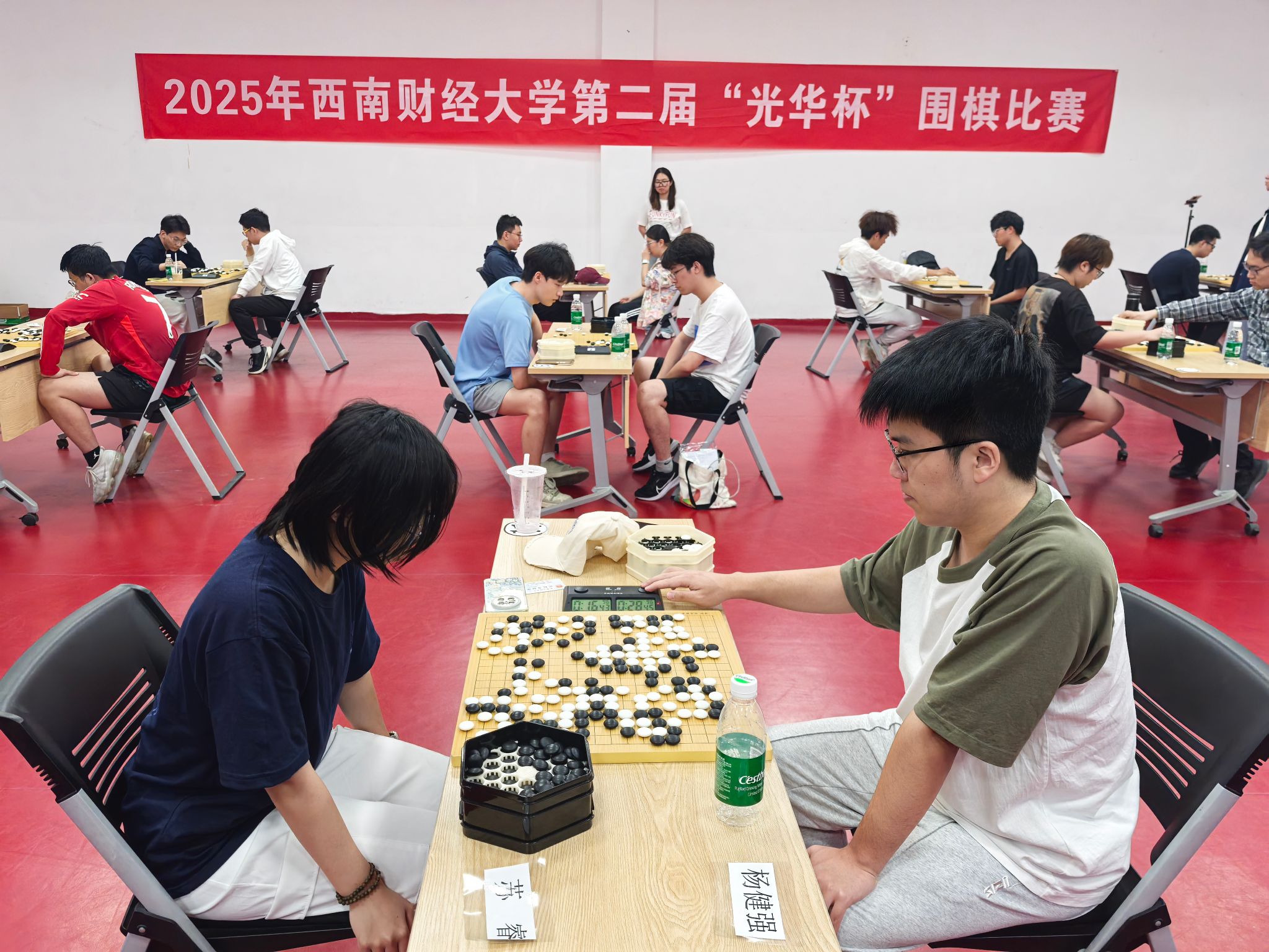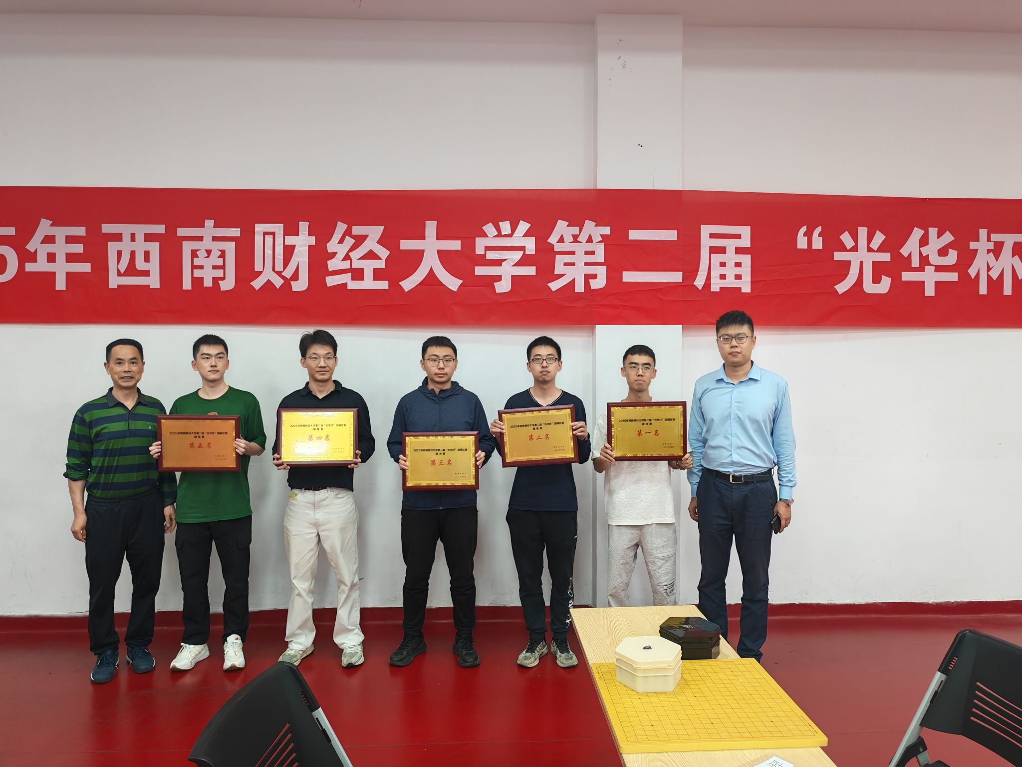 比赛现场气氛紧张而热烈,棋盘上黑白交错,落子声此起彼伏。每一步棋都经过深思熟虑,棋手们凭借着扎实的棋艺和冷静的判断,在黑白世界中展开了激烈的博弈。无论是布局的精妙构思,还是中盘的激烈争夺,亦或是官子阶段的精细计算,都展现出了棋手们高超的围棋水平和顽强的竞技精神。经过五轮紧张而激烈的角逐,最终决出个人组前八名和团体组前五名。