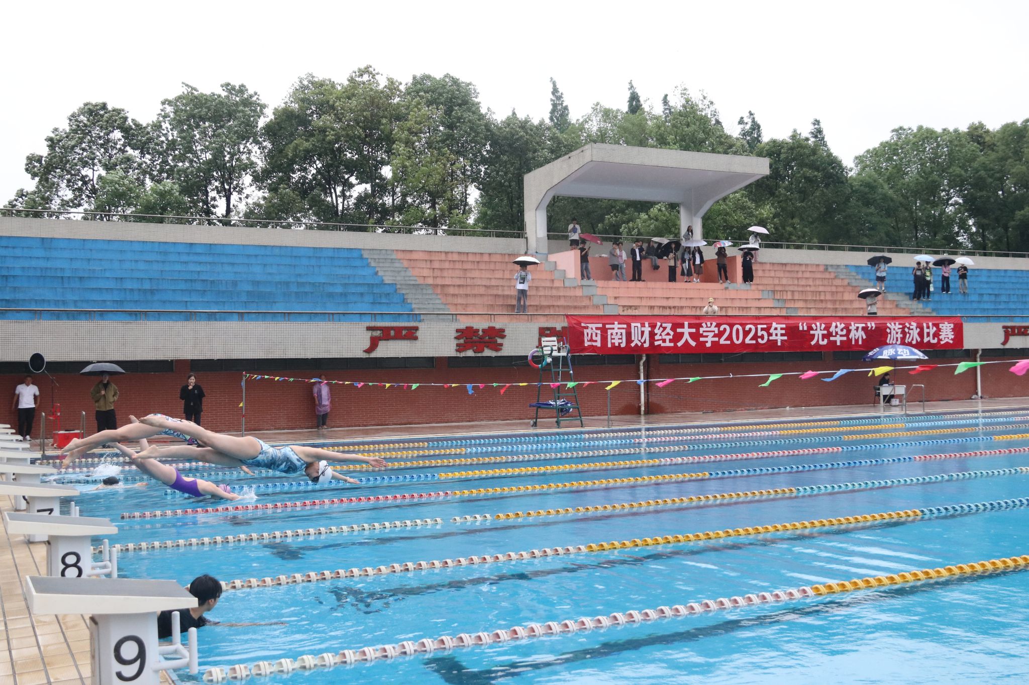 5月27日下午, 2025年“光华杯”游泳比赛于在柳林校区游泳池圆满举行。赛场上,选手们以矫健身姿劈波斩浪,用热血斗志为百年校庆献上活力四溢的水上华章。