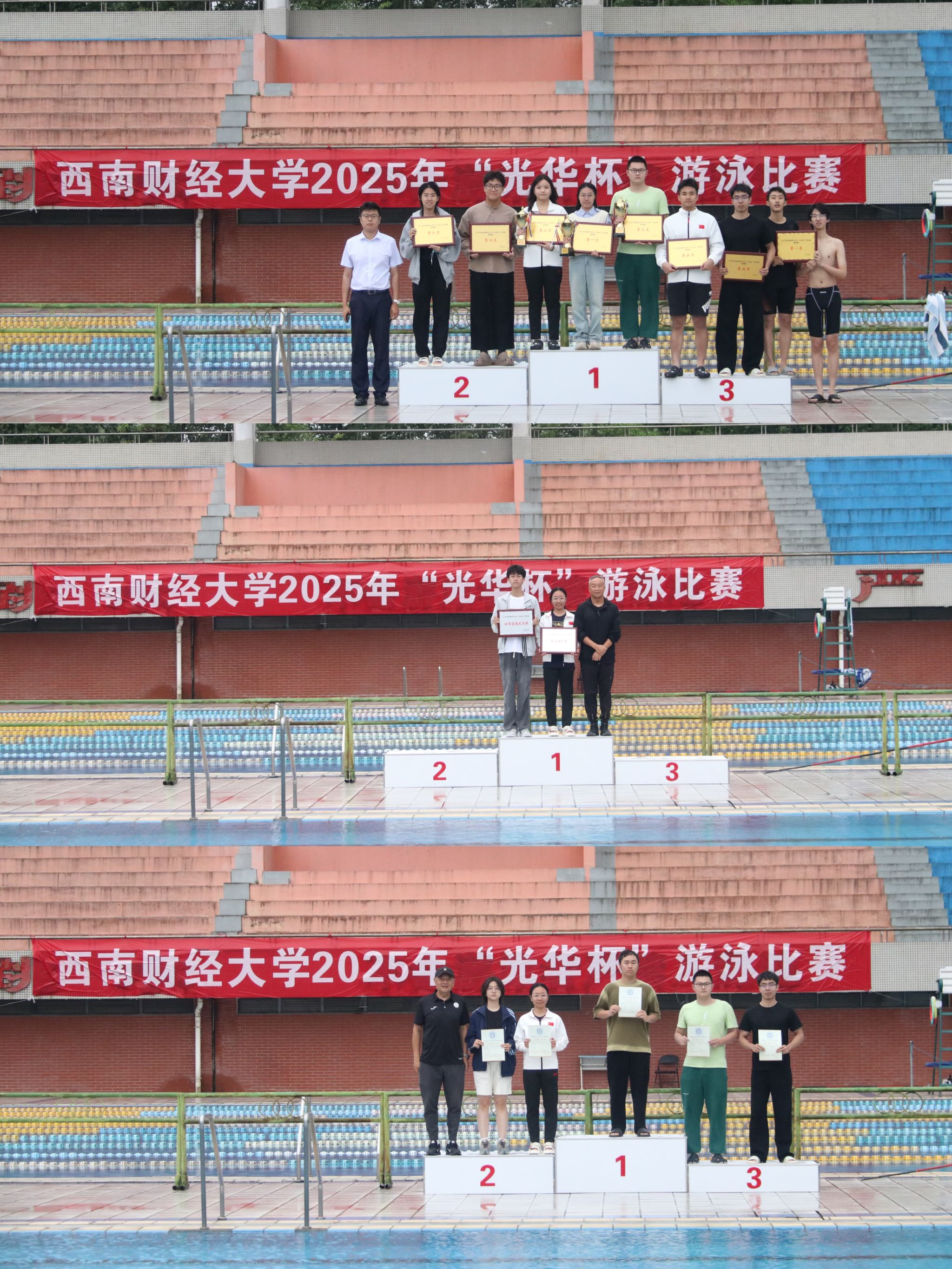 此次比赛不仅是速度与力量的激情碰撞,更是以体育人理念的生动诠释。不仅增强了各学院之间的交流与合作,更彰显出新时代西财青年学子的青春活力与精神风采。展望未来,这份在泳池中淬炼的精神,将凝聚成磅礴合力,与万千师生共庆百年、共襄盛典,携手书写西南财经大学更加辉煌灿烂的新篇章!