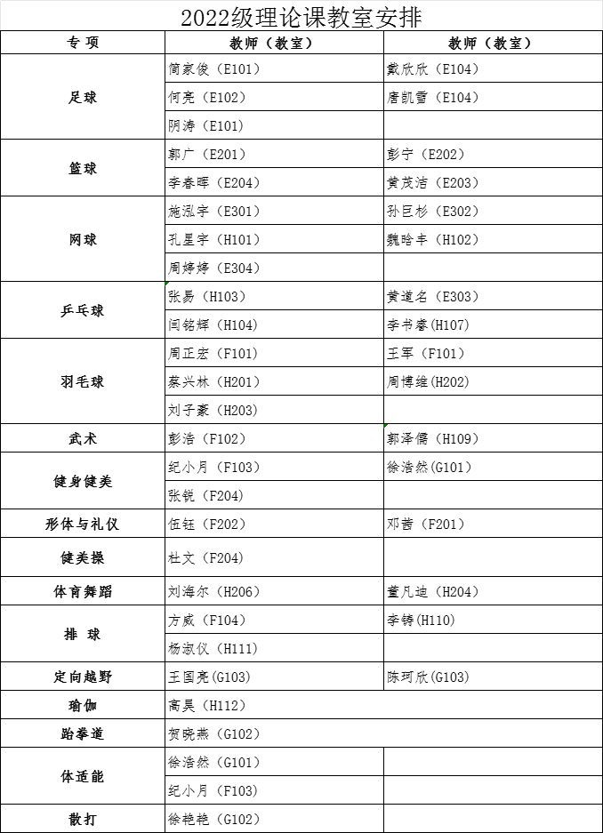 经教务处同意,本学期2022级、2023级本科生第1周体育课为开云(中国)理论课,3月4日起恢复户外教学。根据教室资源状况,现将理论课具体安排通知如下: