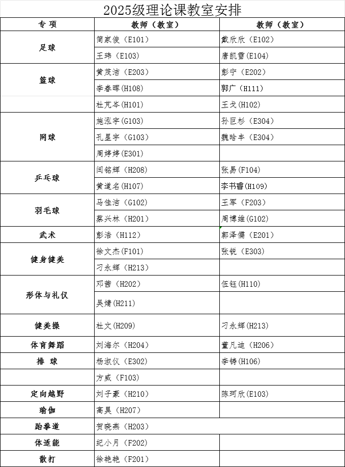 经教务处同意,本学期2025级本科生第3周体育课为开云(中国)理论课,9月28日起恢复户外教学。根据教室资源状况,现将理论课具体安排通知如下: