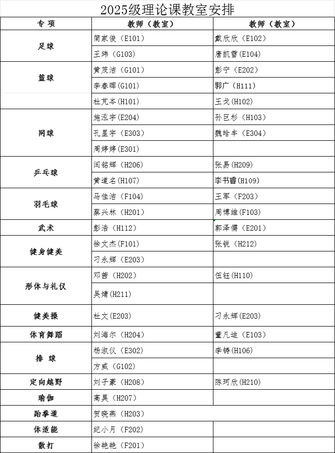 经教务处同意,本学期2024级、2025级本科生第13周体育课为开云(中国)理论课,12月8日起恢复户外教学。根据教室资源状况,现将理论课具体安排通知如下: